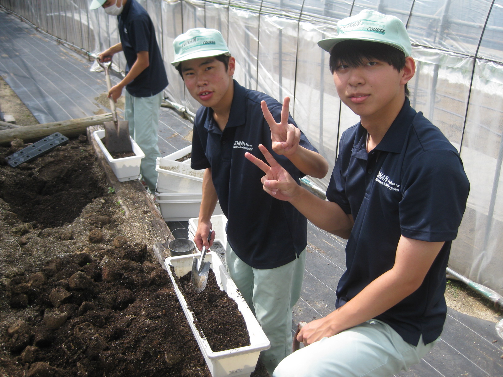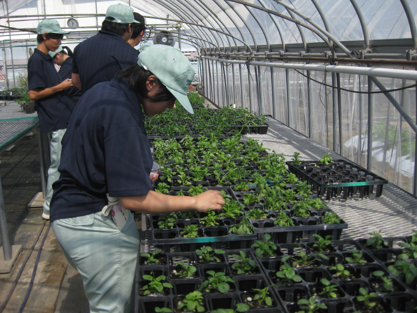 今週の園芸は、先週に蒔いたコマツナの間引きやハボタンをプランタに移し替えたり、枯れた下葉のかぎ取る管理と平均気温も下がってきたので高温対策が出来る環境の良いガラス温室からパンジーやビオラ、ナデシコ、キンギョソウなどをビニールハウスへ移動させ追肥も行いました。城南祭むけ、てもう少し管理を頑張ります。