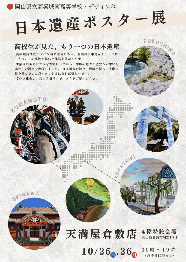 10月25日、26日の2日間、天満屋倉敷店にて、本校デザイン科の生徒による「日本遺産ポスター展」を開催しました。