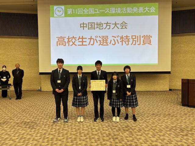 12月に広島県で開催された「第11回 全国ユース環境活動発表大会 中国地方大会」にて、環境科学科のブッポウソウプロジェクトチームが「高校生が選ぶ特別賞」を受賞し、全国大会への出場を決めました!
