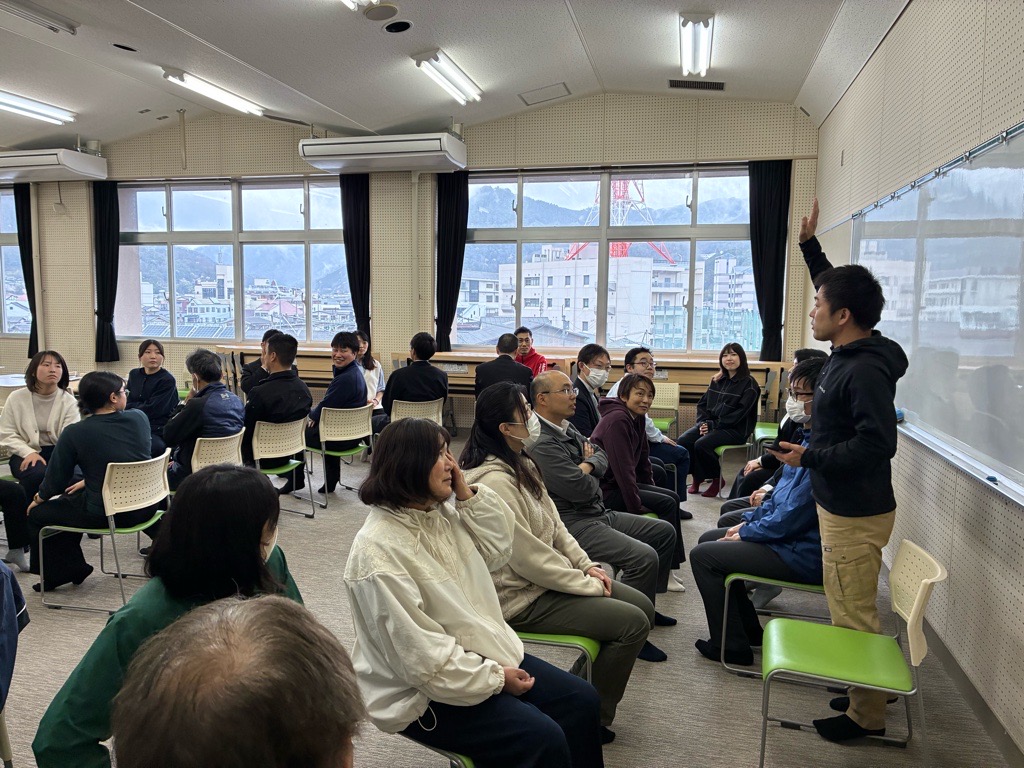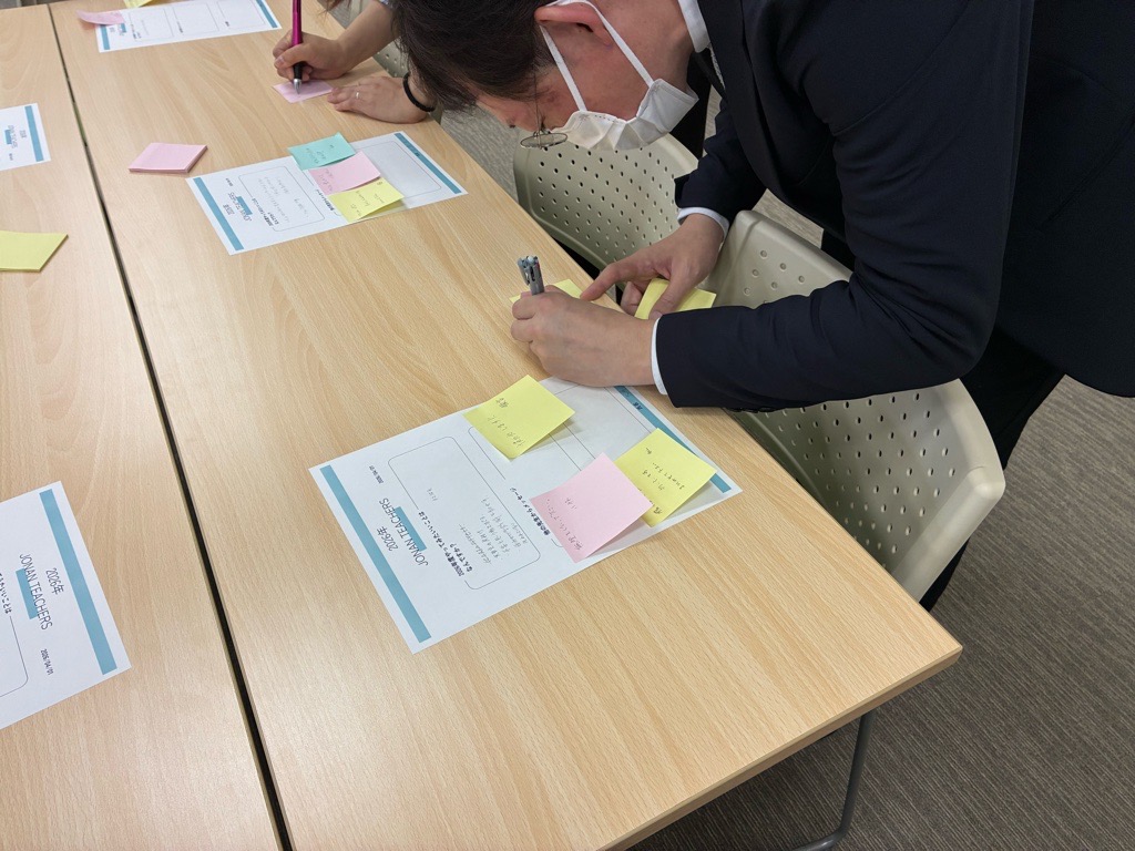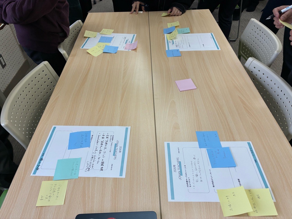 高梁城南高校総務課改め魅力化推進課の年度初めは、新任者の方への本校紹介プレゼントとアイスブレイクを兼ねた全体会を行いました。本校の重点目標や4つのCと昨年度の総合的な探求を受講した2年生のアンケート結果より達成状況の報告をしました。その後、参加者全員で「TFD(トークフォークダンス)」です。ファシリテーターが用意した質問を四苦八苦しながら一生懸命相手に伝えます。スピーチの時間が足りないぐらい盛り上がりました。そして、その雰囲気のまま今年度やってみたいことを記入し、アドバイスを付箋紙で付け合いました。暖かいアドバイスがたくさん張られていてとてもよい雰囲気で会を行え、1年間皆さんとともに頑張りたいと思いました。