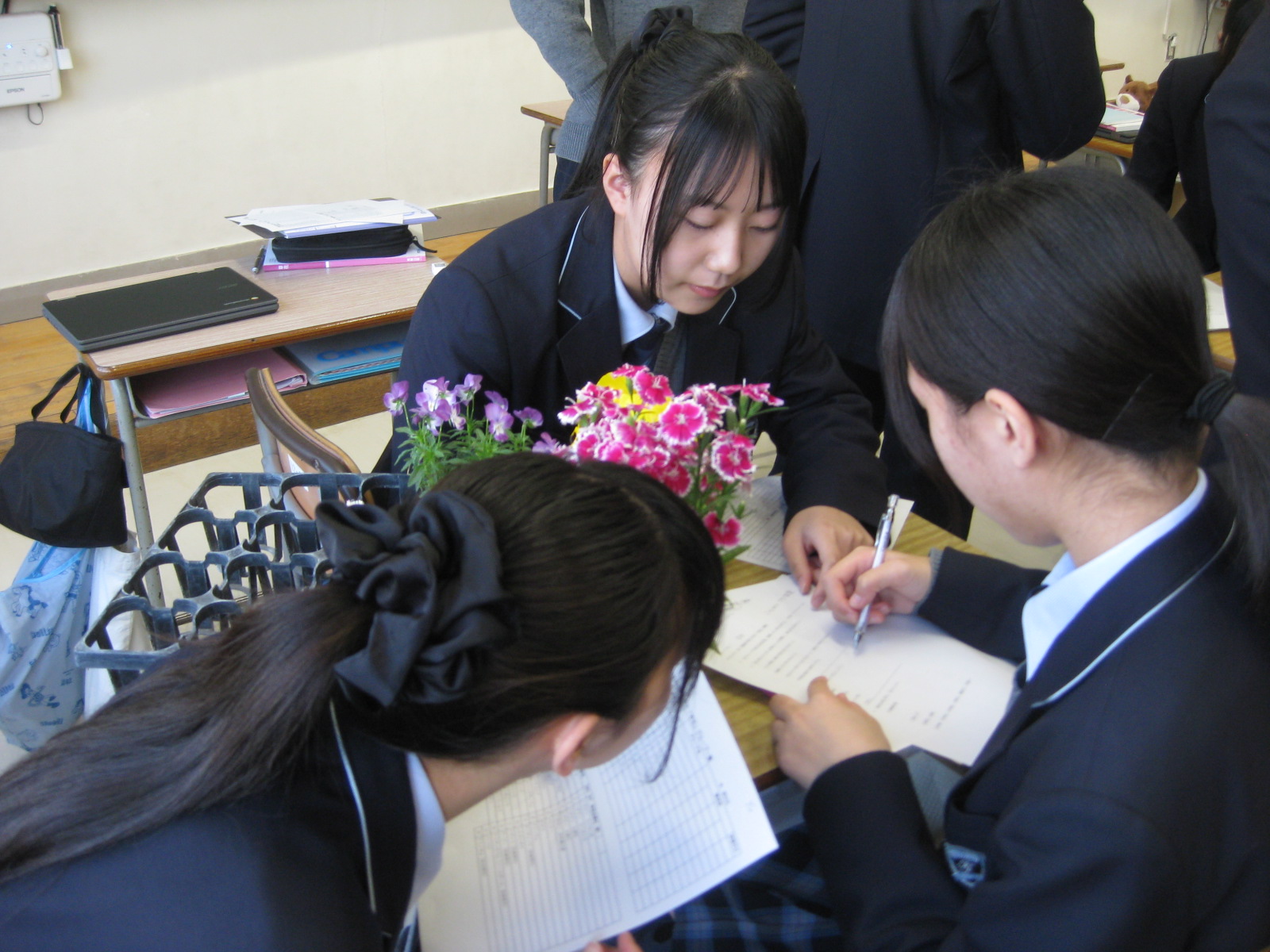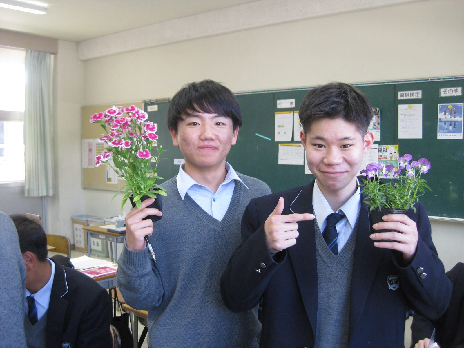 今日は、2回目の環境科学科2年生の「草花」の授業でした。今回は、環境科学科生活コースで行っている「Jonaカフェ」を花で飾る年間計画を立てました。昨年から始め、今年はより生徒に花の栽培計画と管理をしてもらう予定です。キレイなお花でJonaカフェを盛り立てましょう。