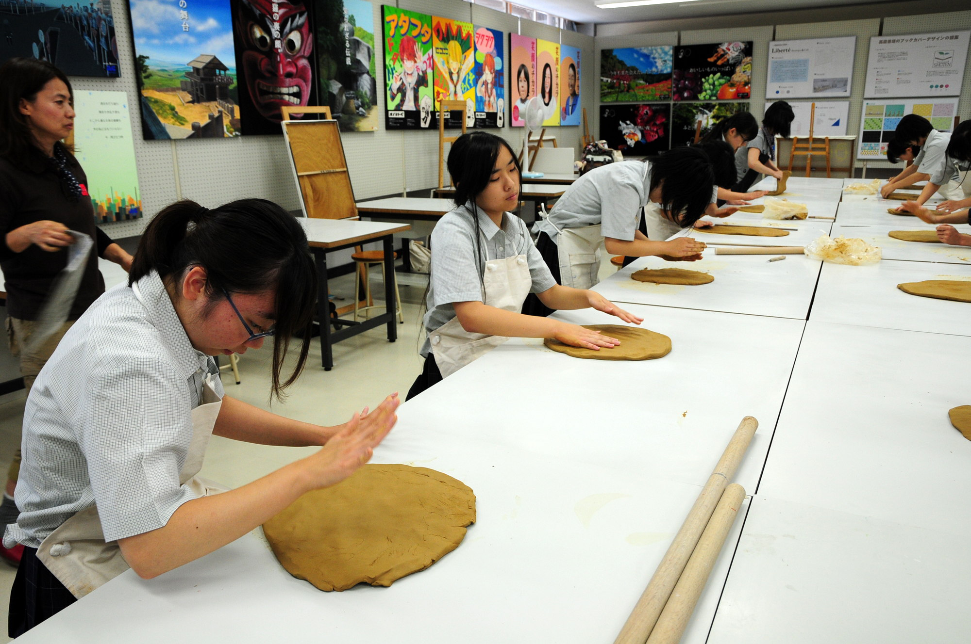 7月にデザイン画を完成させ、8月には田邊さんに陶芸の指導をしていただきながら美術部員で陶板を制作しました。